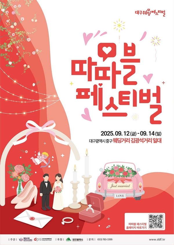 작성자 브리즈 댓글 0건 조회 260회 작성일 25-09-29 17:11대구시는 비혼·저출산에 대한 인식 개선과 지역 웨딩산업 활성화를 위한 ‘2025 대구웨딩페스티벌’을 12일부터 14일까지 사흘간 김광석다시그리기길을 비롯한 대봉동 일대에서 개최한다.